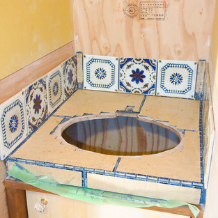 入り口の床ですがなんとも言えないカラーでまったく使えないので解体します。ここにはレンガを入れようと思います。