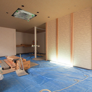 内部の塗装仕上げが進んでいます、外部は特殊な左官材を施しています。